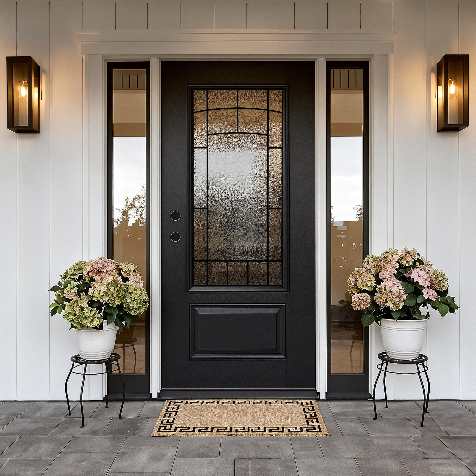Features Glass Panel, Lockset Bore (Double Bore), Weatherstripping