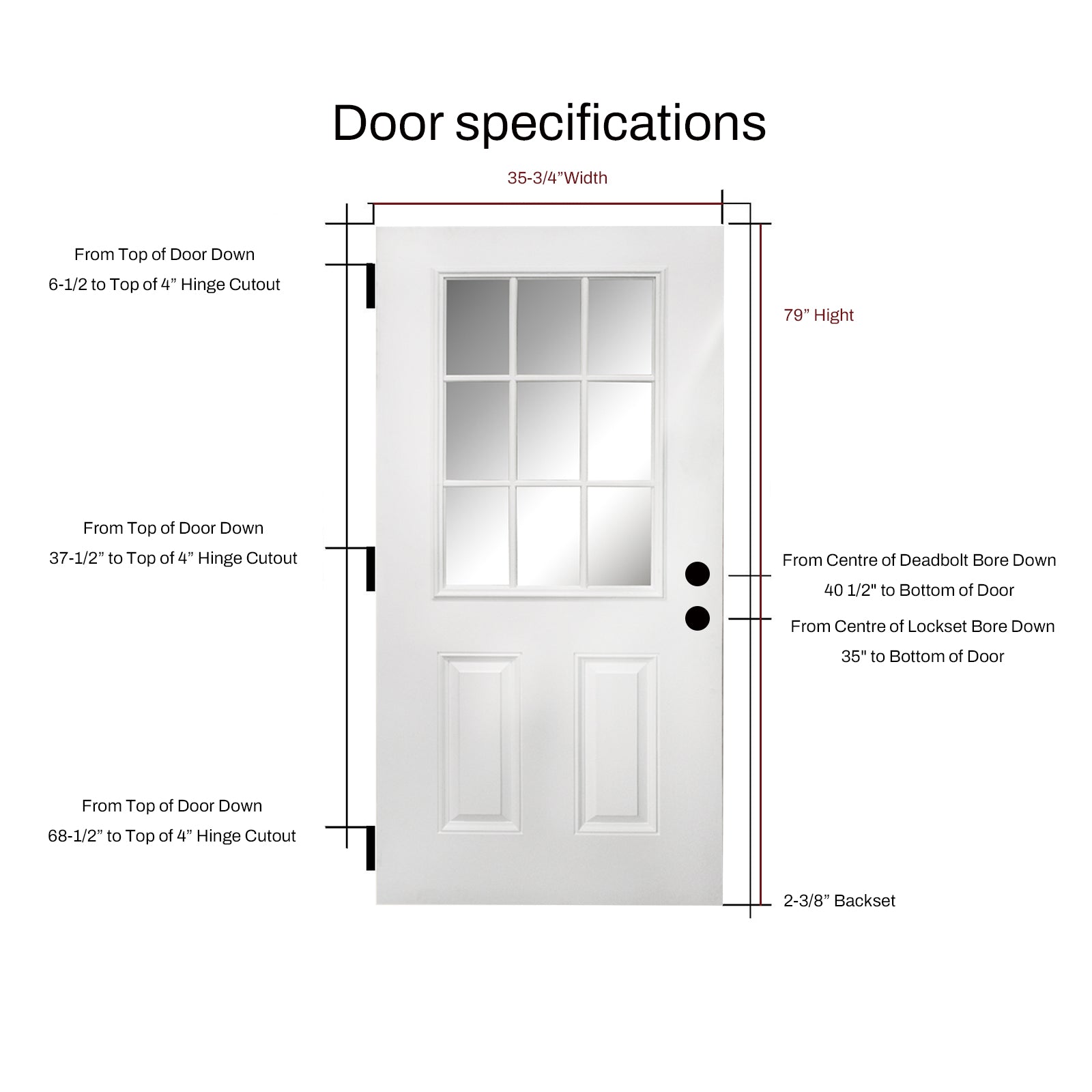 Features Glass Panel, Lockset Bore (Double Bore), Weatherstripping