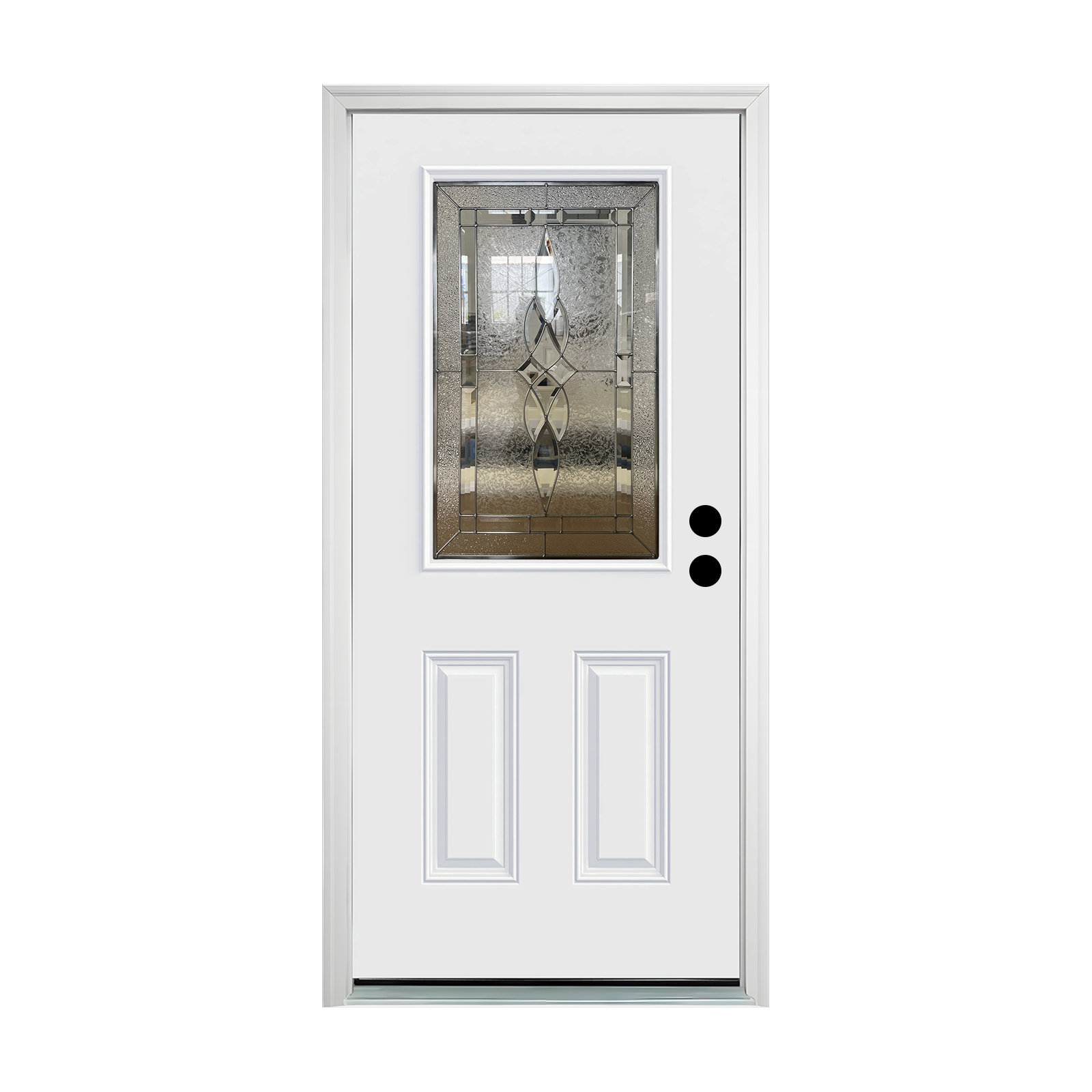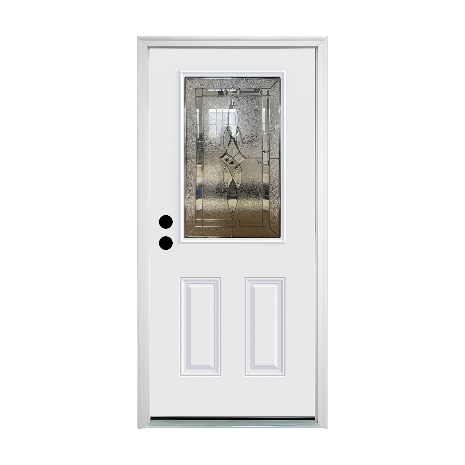 Features Glass Panel, Lockset Bore (Double Bore), Weatherstripping